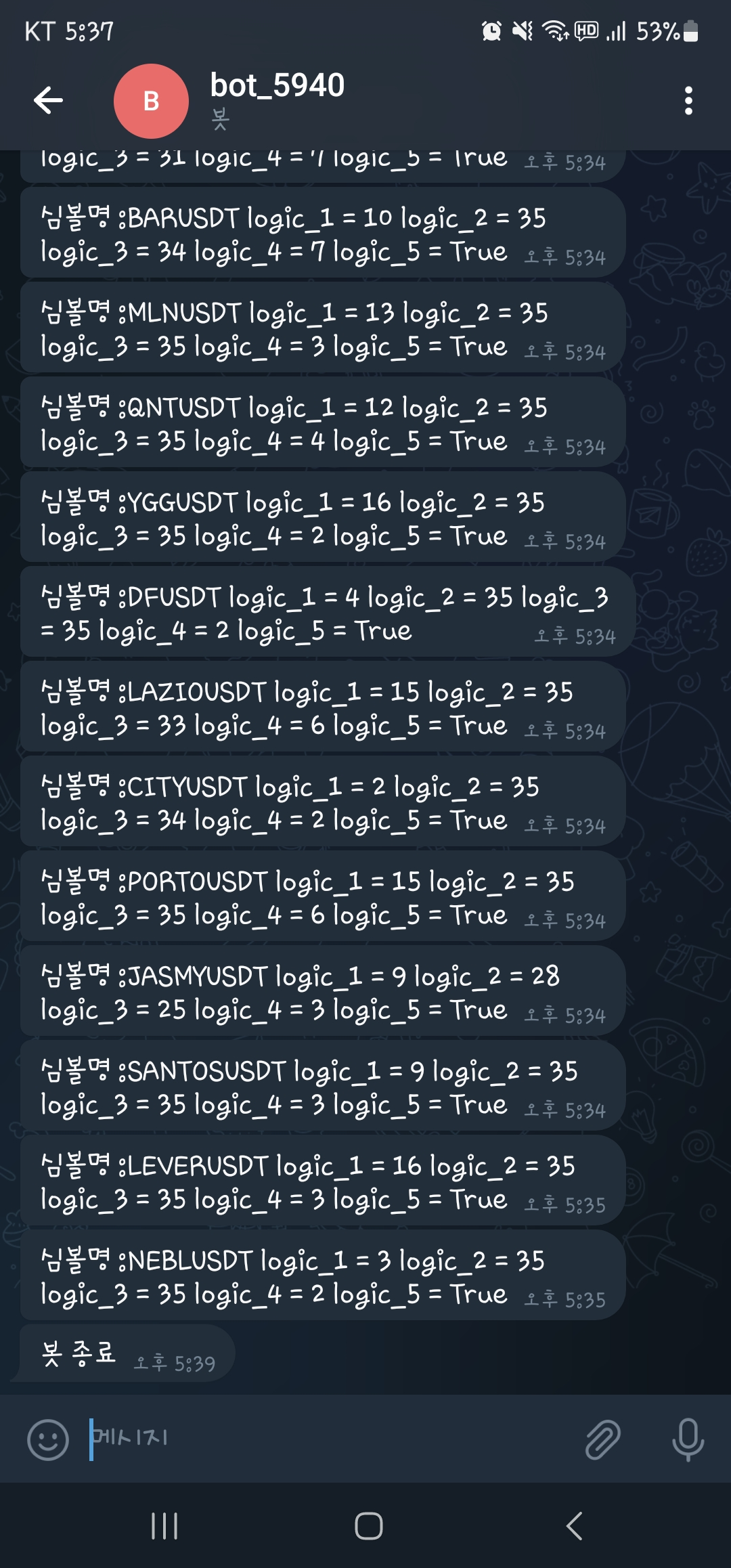 내 텔레그램 봇 예시이다.