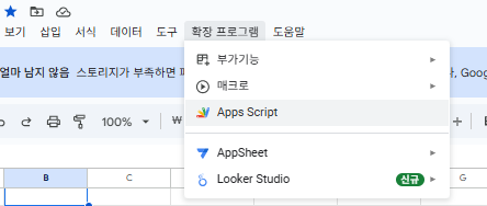 그리고 나서 "확장 프로그램 - app Script " 를 들어가면