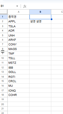 이런 형태로 (체크를 원하는 )종목명을 입력합니다.